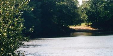 For about ten weeks I swim at the pond, sharing space on the beach with a much broader clientele than at the pool, and often with people's waterloving dogs. Thanks to the swimming hole's reputation thoughout the Valley and at the local colleges, I may hear Spanish, Hindi, Polish, Japanese or German or just about any language around me. The white laurel blossoms and the yellow and indigo irises pass away and blistering days bring a few snakes into the current. One of the pond's small pleasures is circling from one beach to the other on the little trail around the pond and watching turtles sunning themselves on big fallen branches in the water, sometimes jumping off the wood with a barely audible sploop.