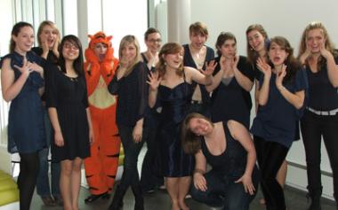 Fun was the theme when I met the Noteables at Smith’s Campus Center to attempt to interview 13 of their 14 members at once. Smiles were abundant and eyes bright; postures were lithe and alert and wits equally so. I was immediately given some complimentary temporary tattoos bearing the logo of the Smith Pioneers, which is the name of all the school’s athletic teams, from track and field to crew. I was also given the April Fool’s Day issue of the Sophian, Smith’s student-run newspaper, which for this all-parody issue was titled the So Feezy—a reference to rapper Lil’ Wayne that I must admit I am too old to fully grok.