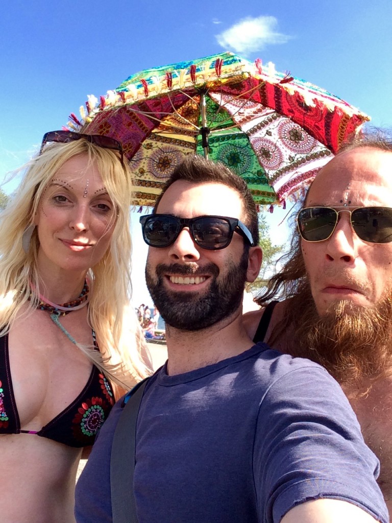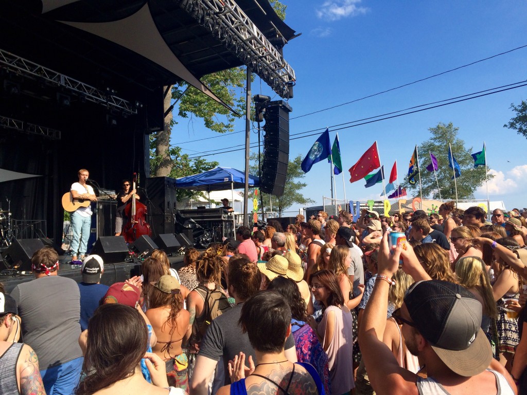 I took a Hula-Hoop to the face around 2:30. It was my fault, really — I tried to cut through a small grassy park on my way to the Green Vibes stage, but I didn’t make it through the gauntlet. My face was still stinging when the Brooklyn jazz fusion band Moon Hooch started their fun, loud, very weird set. Twenty minutes into their crackling, systematic deconstruction of all things harmonic, I could feel the deep dubstep and saxophone riffs reverberating in my teeth.