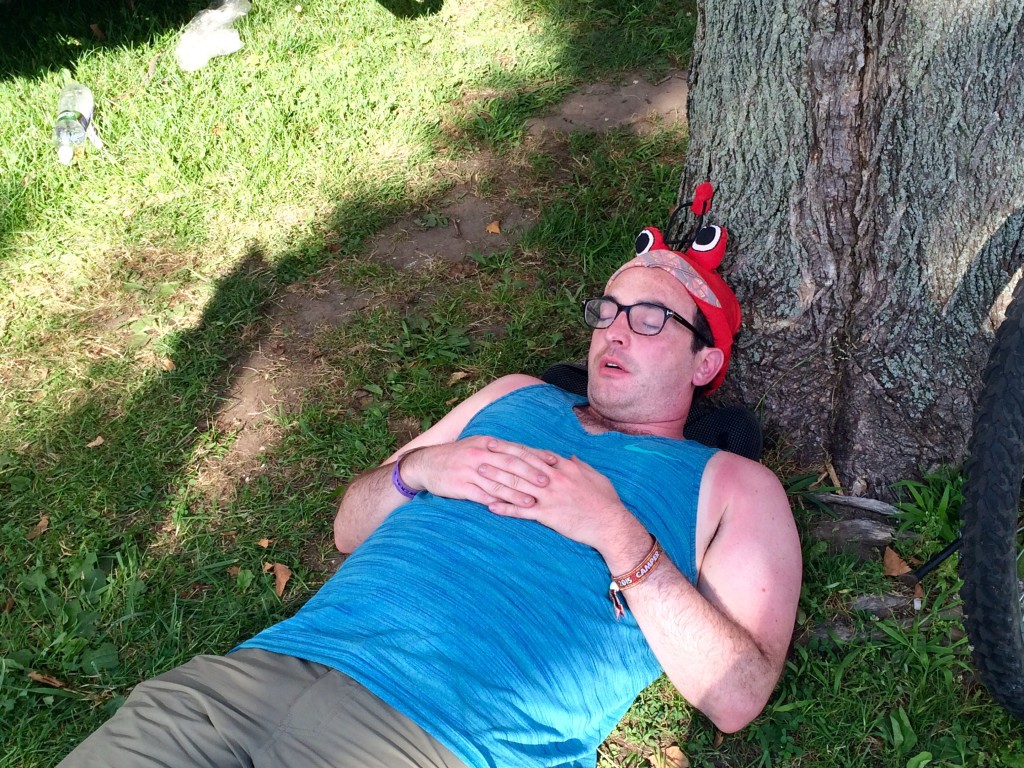 Music aside, much fun goes into people-watching, and at events like this it’s practically like being on safari. Behold: the mighty surfer bro whose fake-tribal patterned swim trunks match his arm tattoos almost perfectly. And look, further down the beach: a guy in a Fishbone T-shirt and a bright red velvet fedora carrying a six-foot-tall inflatable bottle of Fireball cinnamon whiskey. Majestic.