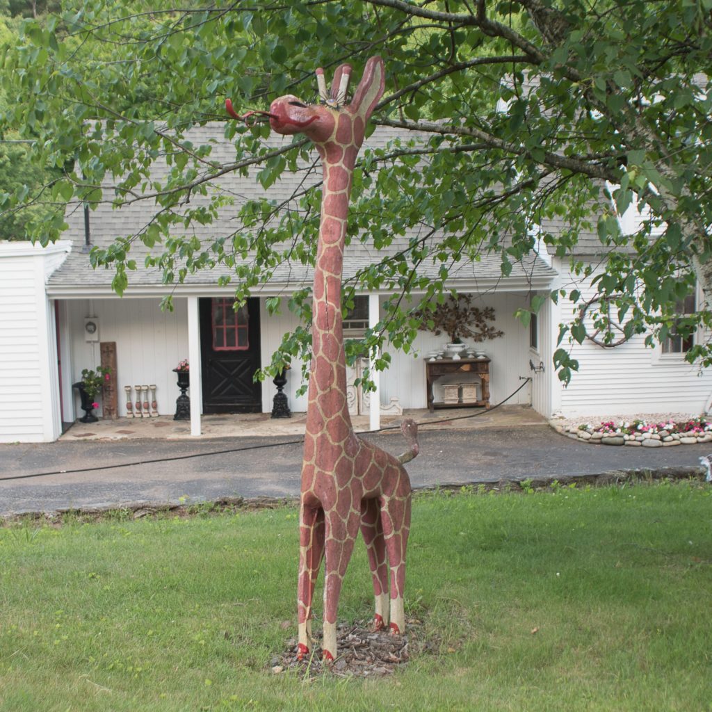 Hampden giraffe. Quirky and fun without being too over the top, this front yard giraffe in Hampden makes us smile every time we drive by.