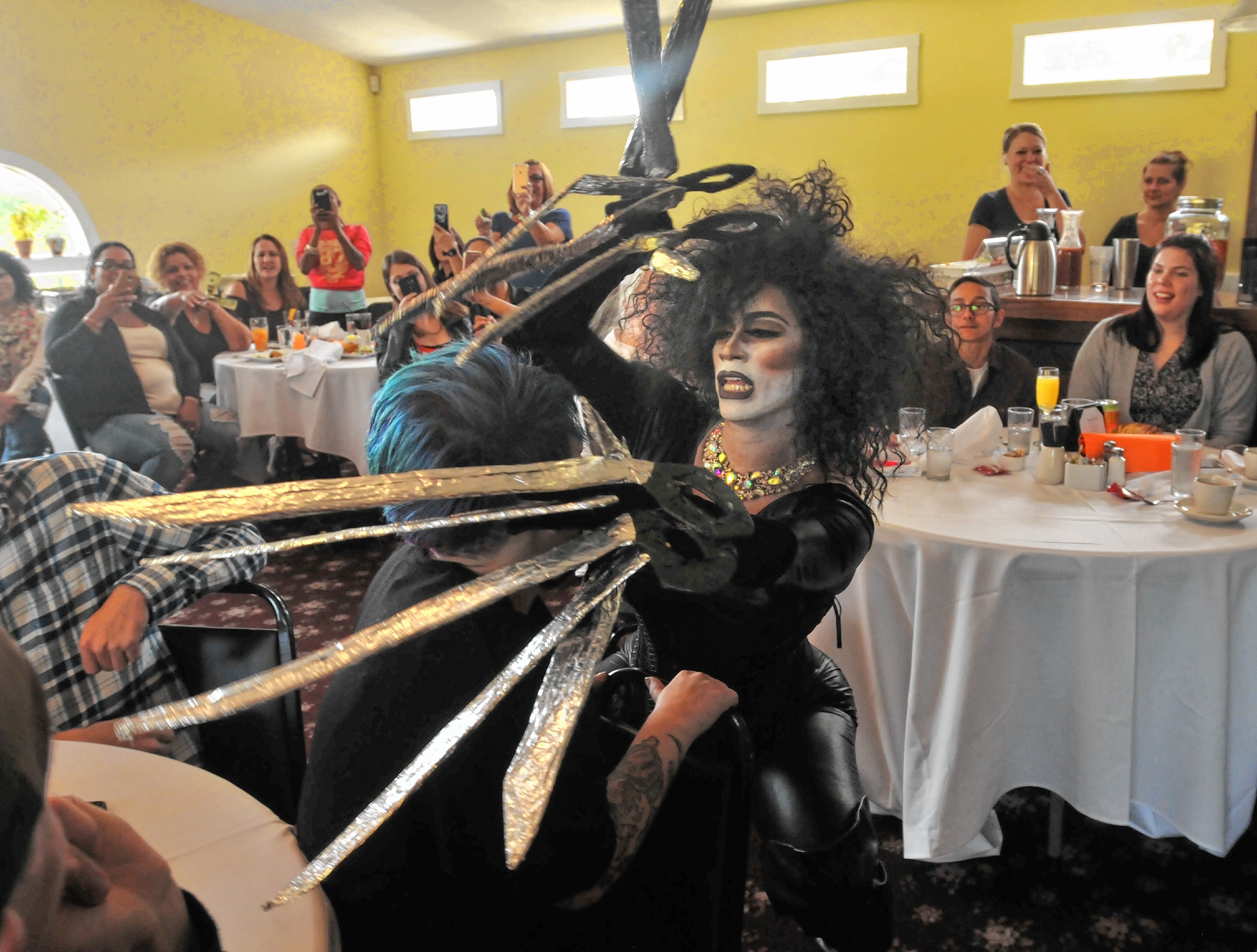 Ruby Monroe as Edward Scissorhands performs at Drag Brunch at Slainte in Holyoke. Carol Lollis photo. by Kristin Palpini | Oct 25, 2016 Ruby Monroe as Edward Scissorhands performs at Drag Brunch at Slainte in Holyoke. Carol Lollis photo.