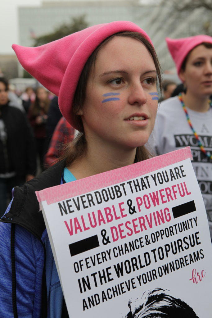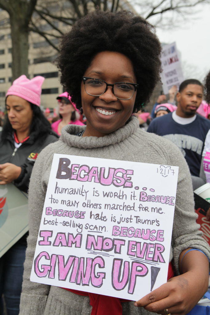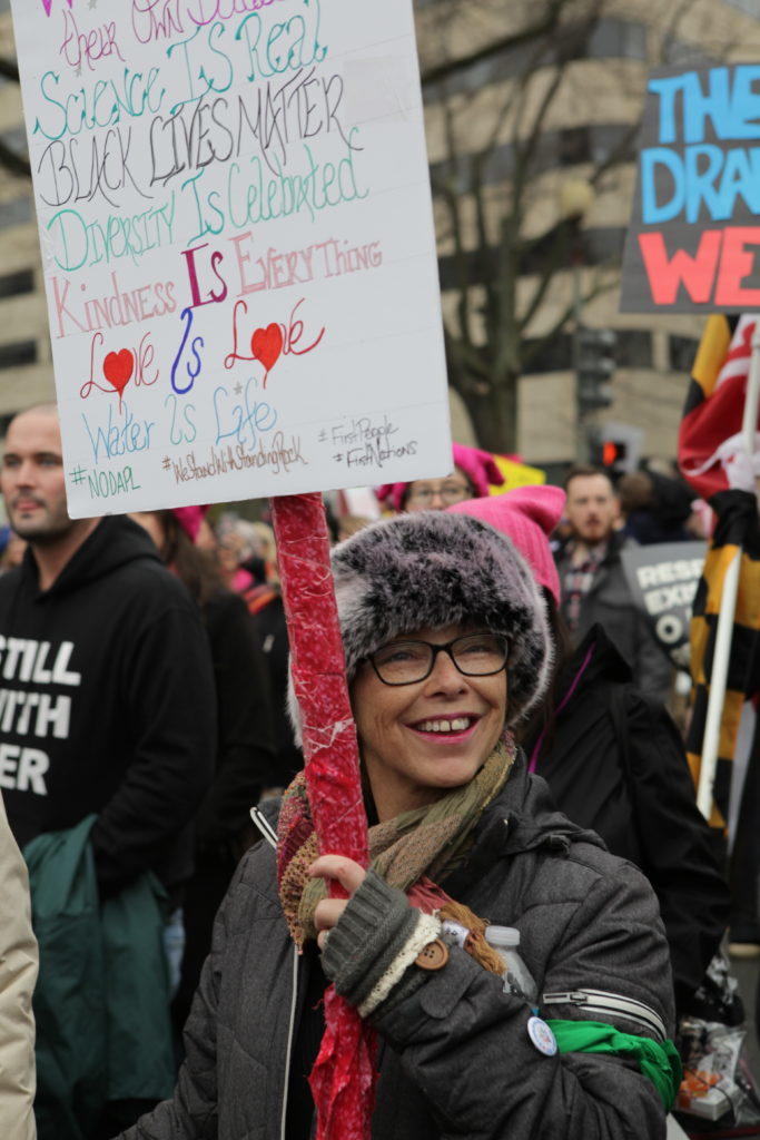 My impression of the Women’s March in D.C. was one of amazement, relief, and hope. At first, the prospect of joining the march was intimidating. I was unsure of my safety, of how the opposition would react toward the protest. We arrived at the rally site early Saturday morning. It was already packed. People filled the streets and kept on coming. My joy and excitement grew as the crowd surged. My worries subsided. I realized that we were part of a huge, historic, and powerful resistance to our new president’s vision for our country.