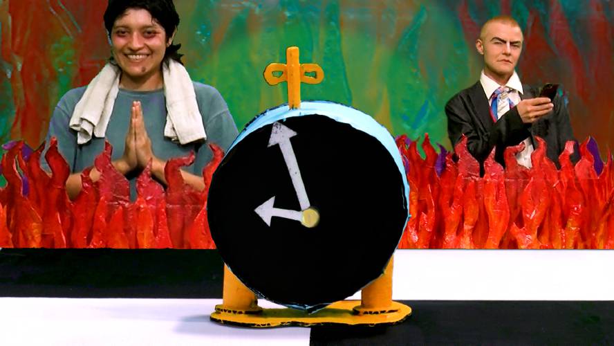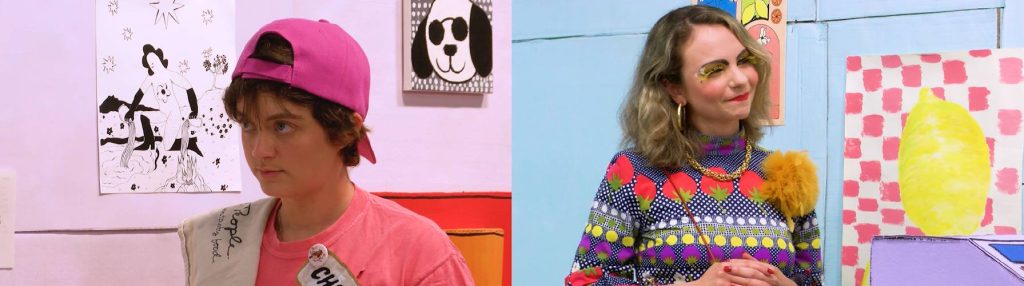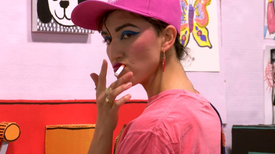 The team put out a casting call last summer, with the requirement that all actors must have worked in customer service before. (The cast and crew are all queer, they said, and many of them are disabled.) The team filmed at Athol Orange Community Television, where Walber works as the program coordinator, on a hand-constructed, hand-painted cardboard set.