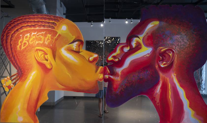 Valley-based multidisciplinary artist Indë’s show, “Mirror, Mirror,” is at the A.P.E. Gallery in Northampton through Friday, Aug. 8. They will debut a music video for the song “Come On Home” from their new album at the show’s opening reception on Friday, July 25. STAFF PHOTO/CAROL LOLLIS