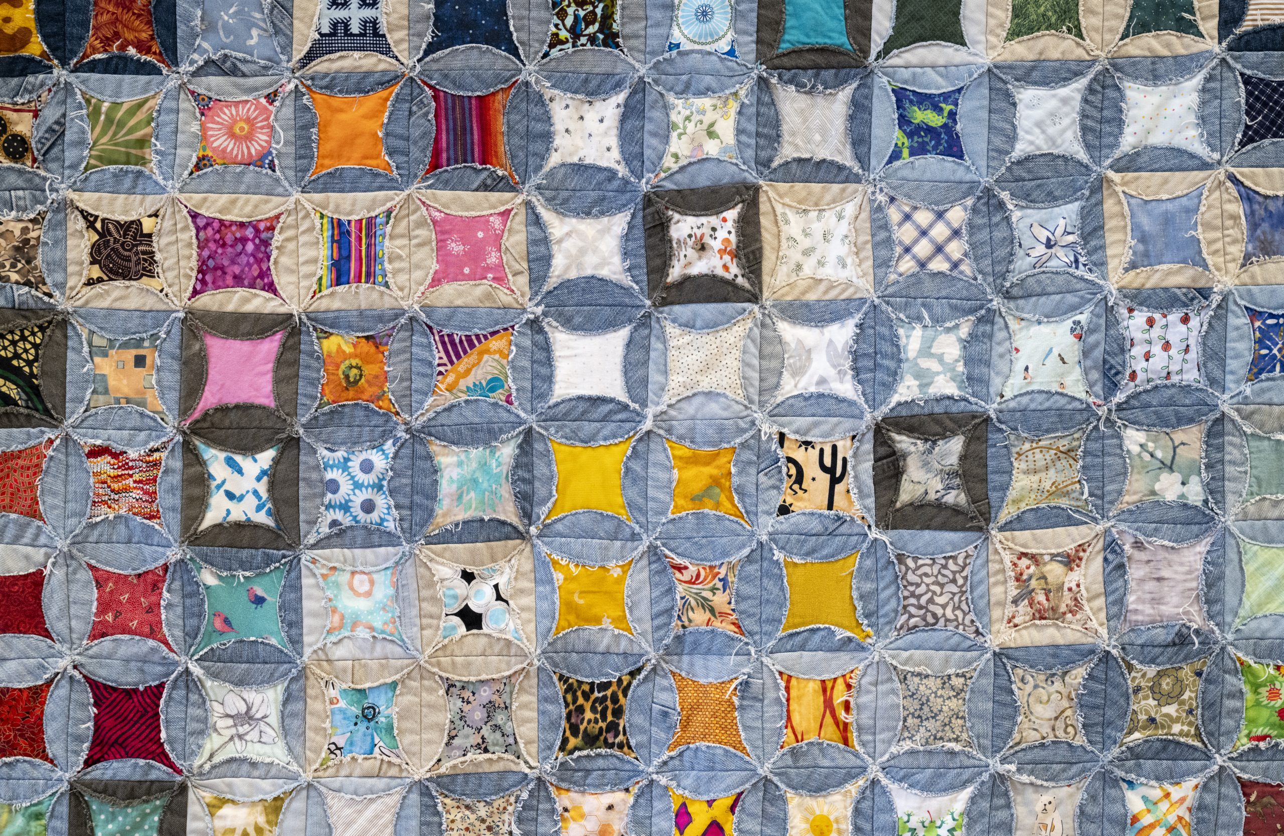 “Ever Denim,” by Barbara Kline, a member of The Fiberistas, on display at the Hosmer Gallery at Forbes Library in Northampton, Tuesday, April 7, 2026. DANIEL JACOBI II / Staff Photo