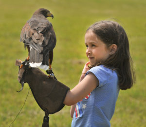 Isabelle Jenkins ,7, of Westfield after the bird has landed.